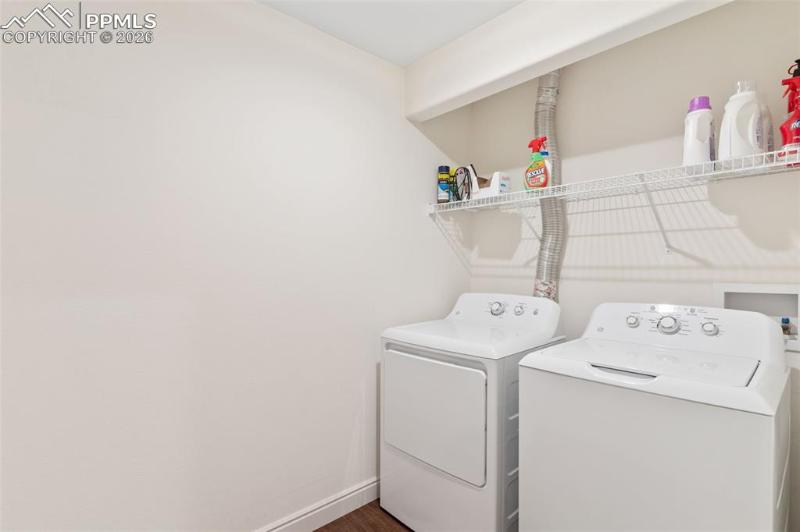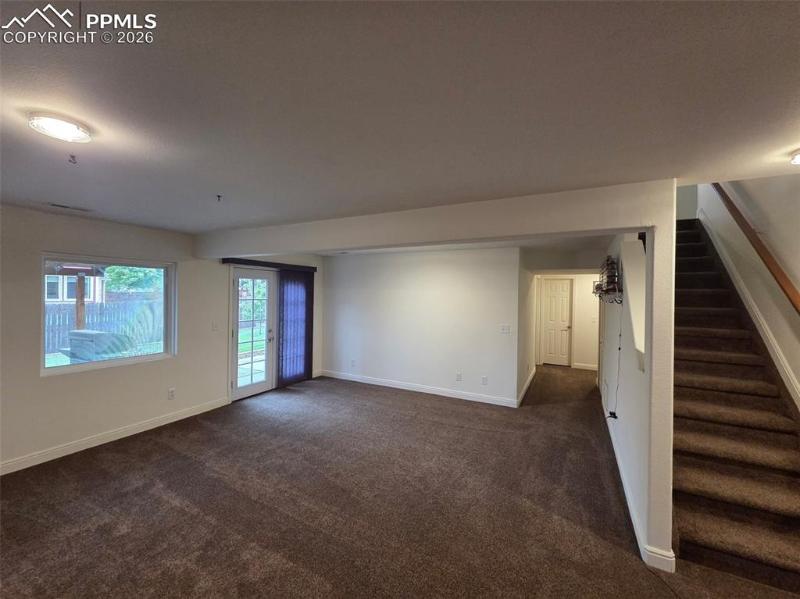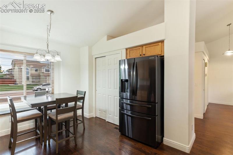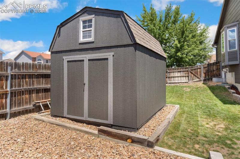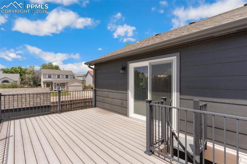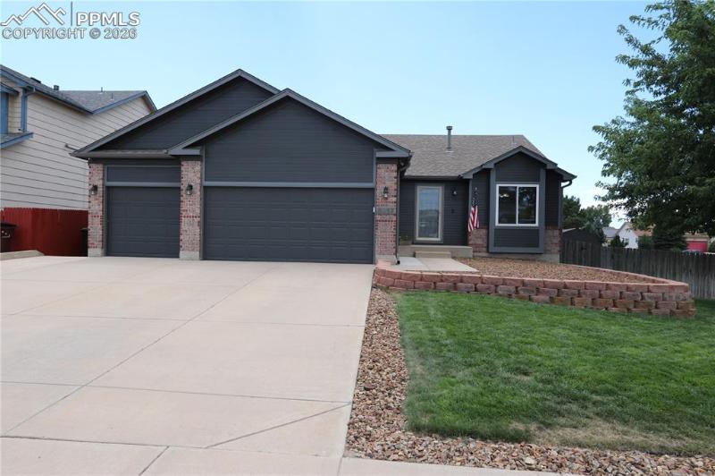 A rare neighborhood find! 3 car insulated/drywalled garage, 3 car wide driveway, plus trailer parking in rock bed alongside fence and NO HOA! Meticulously cared for 2583 sq ft ranch home with 2 bedrooms/ 2 baths on main level, along with living room w/ walkout to deck and large kitchen w/ cabinets galore! Two additional bedrooms in walkout basement level, large, sunny family room, TV area, laundry room big enough for a spare freezer, and mechanical room with area for workshop. Main level hardwood floors, updated kitchen appliances, composite deck with circular metal stairs, main level paint 2024, furnace/AC 2023, hot water heater 2021, all but 3 new vinyl windows, fruit trees and garden planters, 12x10 insulated and drywalled shed, 8x10 shed, exterior paint 2022. Move-in ready! Walk to local park/playground, French Elementary school and fire station. Easy access to Ft Carson, Peterson SFB.